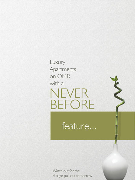 The year was 2010. The global recession that started two years earlier had made the real estate market in Chennai sluggish. An over-supply of projects and fewer customers made discounts and price cuts the order of the day. That is when a challenge was thrown at us.A project had to be re-launched since most of the customers who had booked earlier had cancelled along the way. However the builder continued developing this project which had excellent amenities. We asked them to complete the project and use the fact that you could occupy it the next day as the USP.